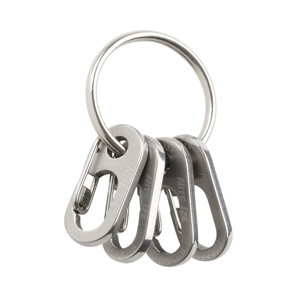 4 Eyelet MicroLink Carabiners attached to 1” stainless steel split ring