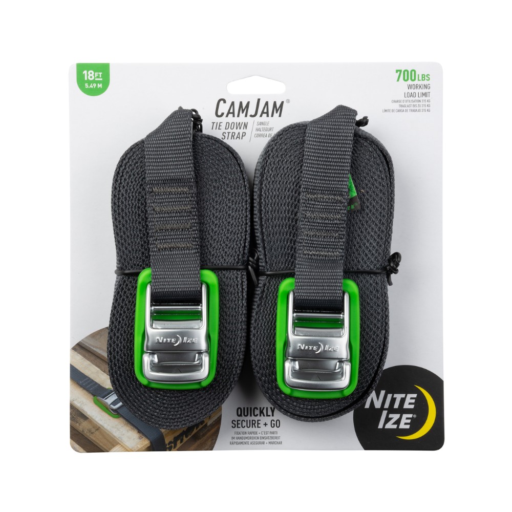 When we have heavy loads to bear, keeping them secure and exactly where we want them is critical. The CamJam Tie Down Strap features an elegant design & high quality materials. It was built for functionality, ease of use, and ultra-security for your heavy loads. The CamJam Tie Down features a high density weave polypropylene 1″ wide strap that is securely attached with 4 bar tack stitches for high strength to a sturdy cast zinc alloy cam mechanism with an integrated protective pad underneath. The non-slip buckle on the cam mechanism not only latches securely, it also provides the ability to gradually release even under high tension, eliminating sudden and dangerous unloading. The CamJam Tie Down can be used in many versatile configurations, including a Loop Configuration and Lockout Configuration. The webbing strap features an angled end for easy threading and intuitive operation in any configuration. All totaled, the detailed features and innovative design of the CamJam Tie Down Strap allows you to confidently secure loads such as – kayaks, surfboards, paddleboards, motorcycles, equipment, lumber, furniture, and appliances – easily, securely, and safely