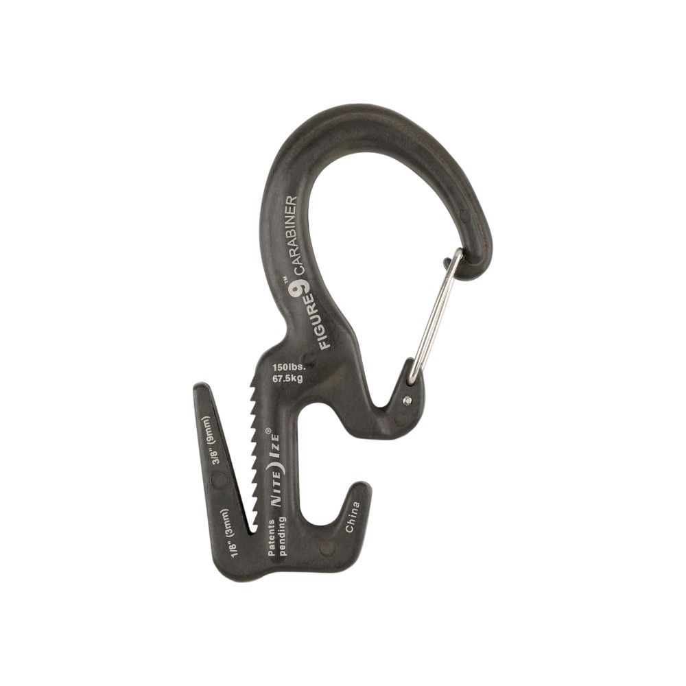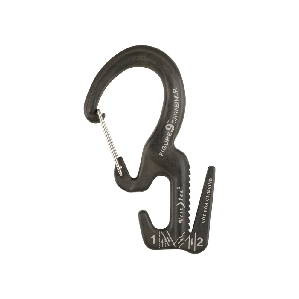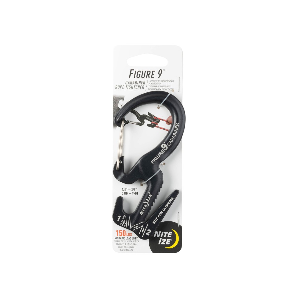 Our innovative, patented Figure 9 tightens, tensions, and secures ropes without knotsāa hassle-free alternative to untying difficult knots and using ropes that quickly lose tension. We’ve made it even easier to use by adding a carabiner clip that attaches to any fixed anchor point. The Nite Ize Figure 9 Carabiner tightens, tensions, and secures ropes without knots. Whether tethering a canoe to your vehicle, anchoring boxes to a dolly, or bundling wood, this carabiner secures large loads quickly and keeps tension where you need it. Loop your rope through its strategically designed prongs, pull it tight, and it stays that way. A smart alternative to complicated cam-locking tensioning devices and bungee cords, the Figure 9 Carabiner also controls the release of high tension, avoiding sudden and dangerous unloading.